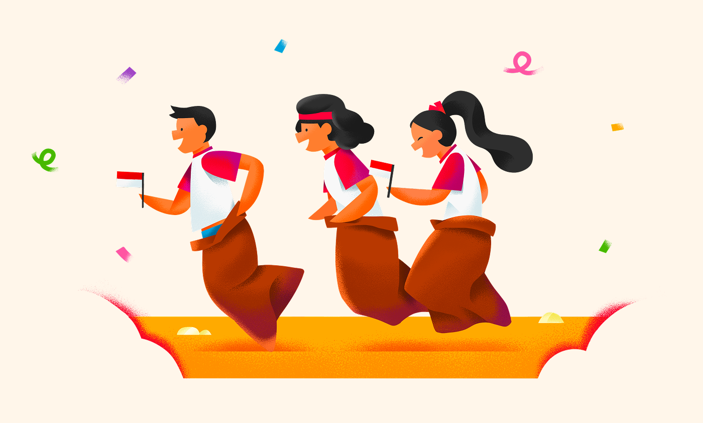 This illustration was created to celebrate Indonesia’s 80th Independence Day through a lens of everyday life and cultural vibrancy. Rather than focusing on nationalistic symbols, the artwork captures local traditions, community activities, and familiar moments that collectively reflect the spirit of a nation. With a warm, celebratory palette and layered composition, the piece blends nostalgia and modernity — honoring not just the history of independence, but the living culture that continues to shape Indonesia today.